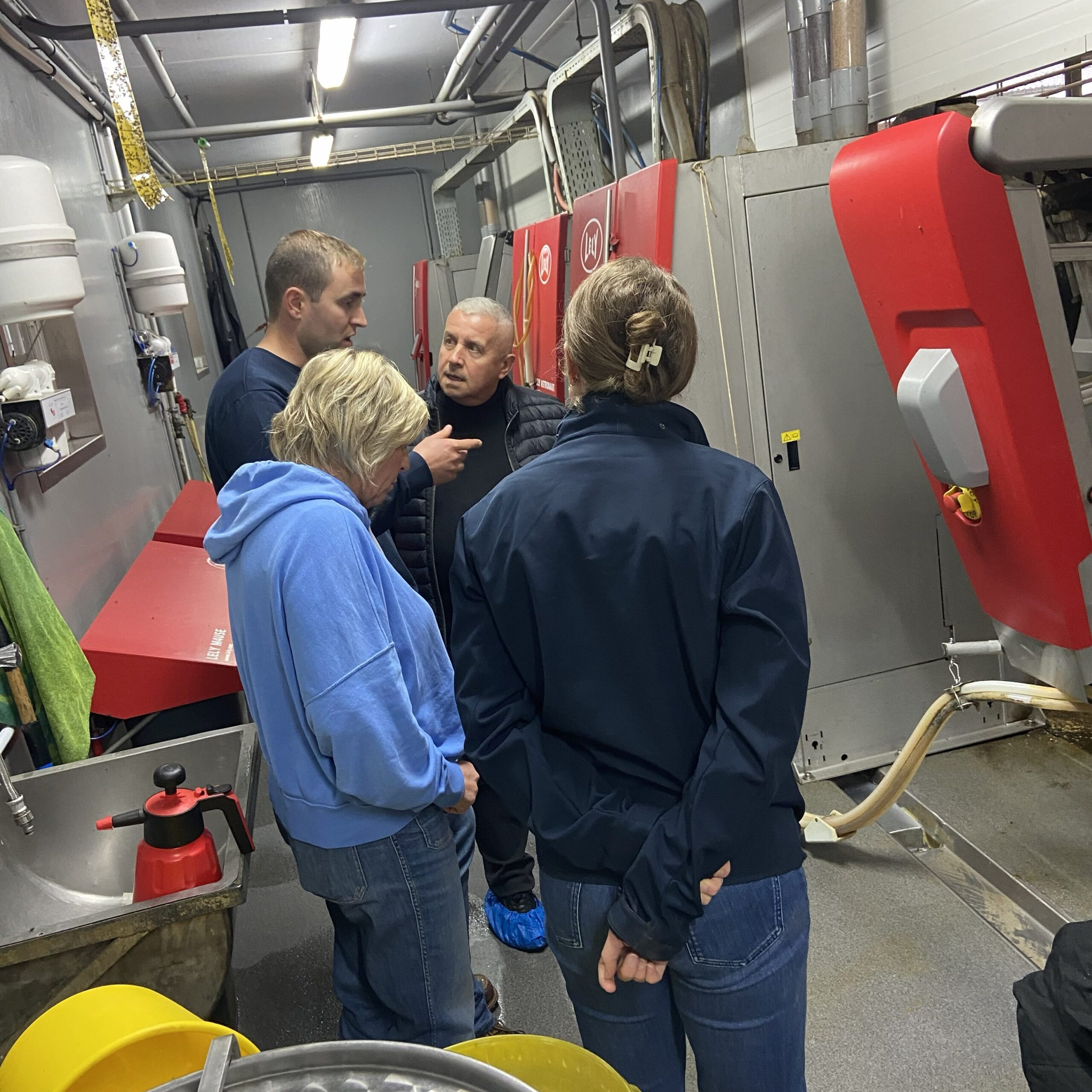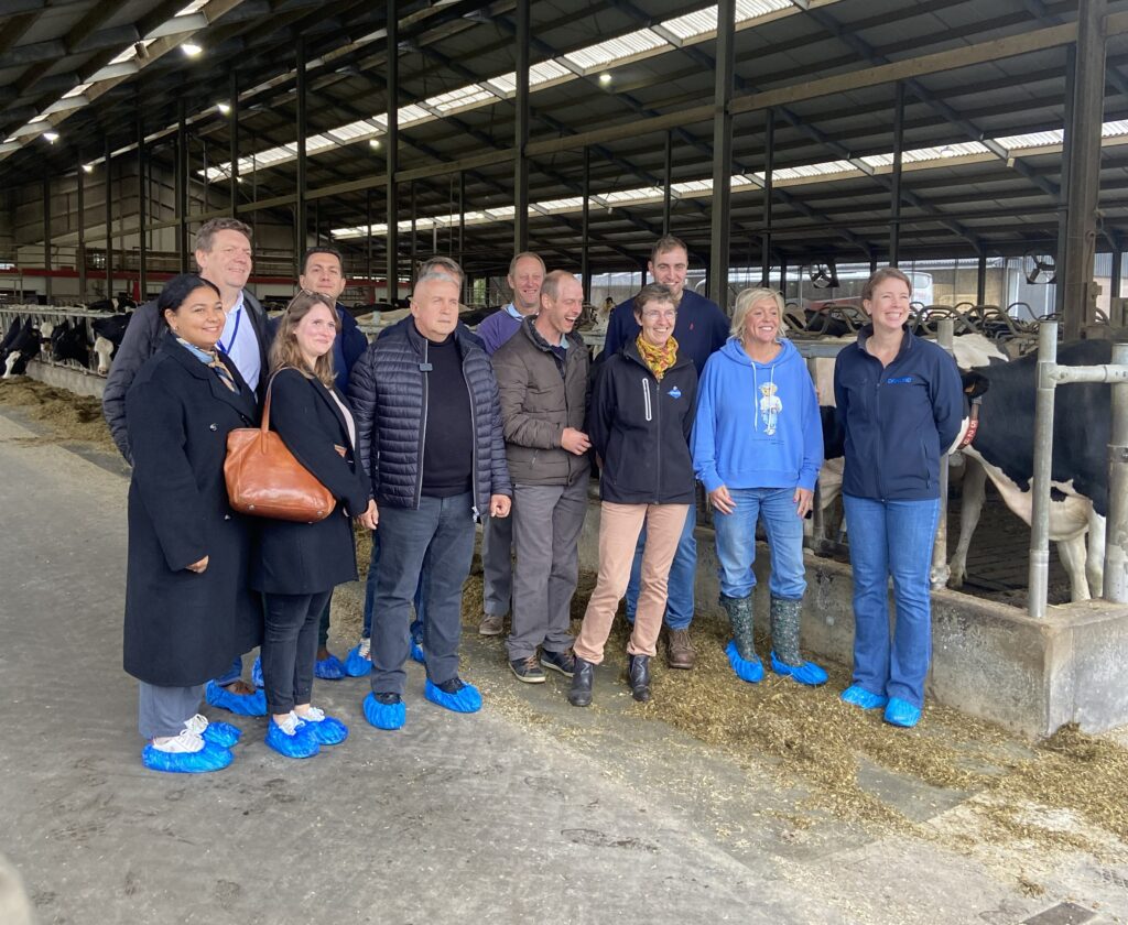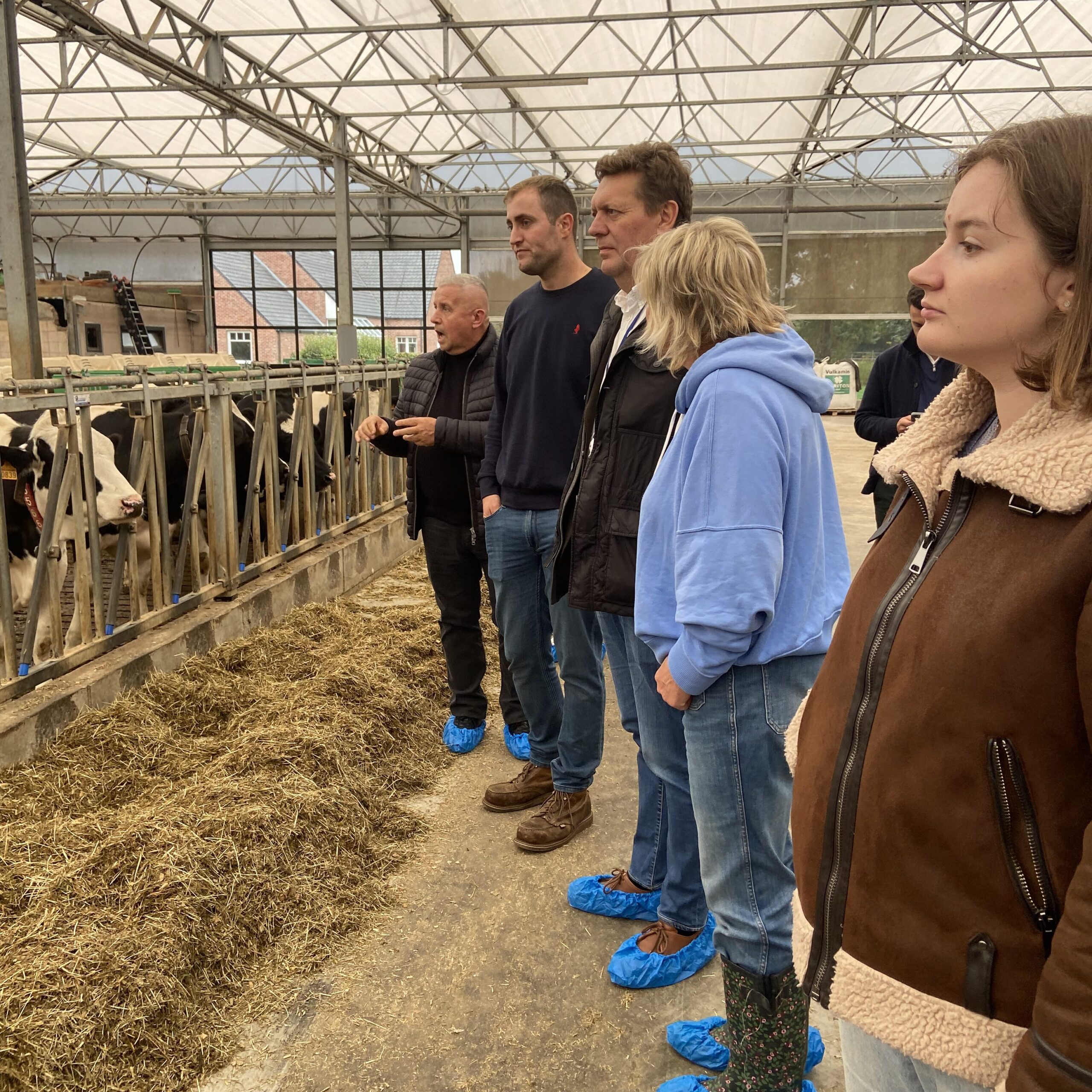 During the visit, the son Nick, who has taken over the running of the farm, explained the family’s recent investments in building a new barn with climate control for the youngstock. He explained the 280-strong herd is in excellent health, producing on average 12,000 litres of milk per cow per year.